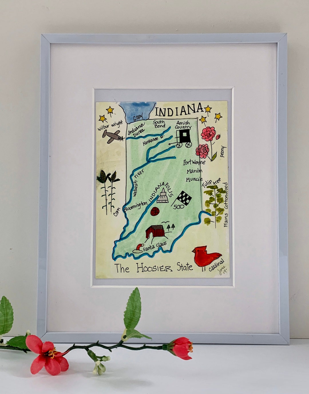 Indiana The Hoosier State Indiana Map Map Art Map Gift Etsy